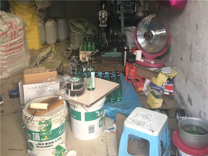 4月11日,環(huán)食藥旅中隊(duì)會(huì)同云崗派出所對(duì)群眾舉報(bào)的地點(diǎn)進(jìn)行突擊檢查,發(fā)現(xiàn)已經(jīng)灌好封箱的品牌白酒若干箱,還未灌裝的白酒盛在大塑料桶里,沒有任何衛(wèi)生防護(hù)措施,塑料桶旁,空酒瓶、商標(biāo)隨處可見。在現(xiàn)場(chǎng),民警還起獲了用于生產(chǎn)假酒的封口機(jī)、打包機(jī)等設(shè)備。