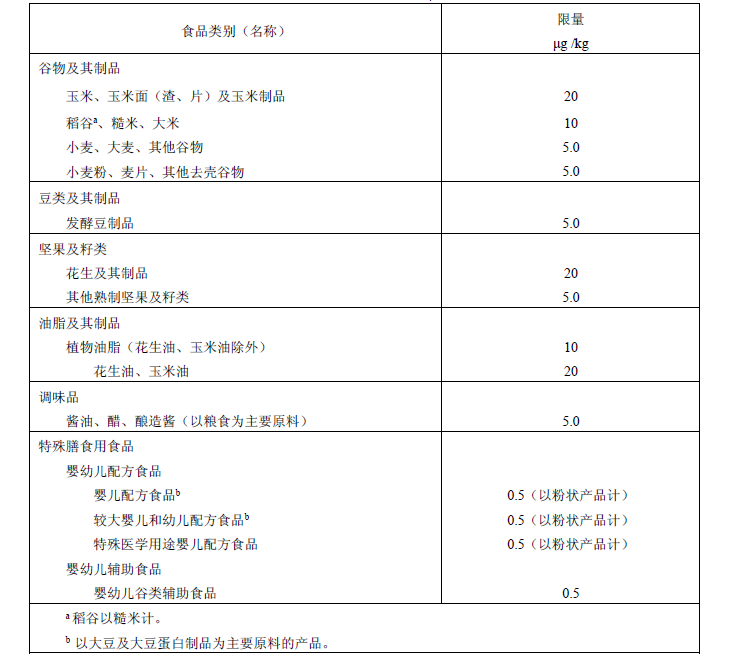 GB2761—2011食品安全國(guó)家標(biāo)準(zhǔn)食品中真菌毒素限量規(guī)定了食品中黃曲霉毒素B1的限量指標(biāo)。