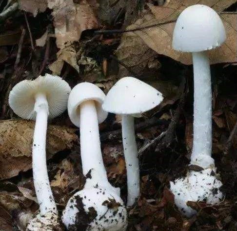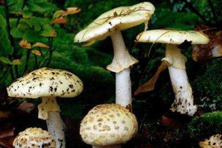 中毒類型為急性肝損害型,是致死率極高的毒蘑菇。菌蓋直徑5-10cm,呈白色,中央常有鈍凸并呈米色,平滑。菌柄長8-16cm,呈白色并有白色鱗片,上部生有白色菌環(huán),基部生有白色近球狀菌托。劇毒。含有鵝膏毒素,造成急性肝損傷,常出現(xiàn)假愈期。一般食用后6~24小時(shí)出現(xiàn)不適,如頭昏、乏力、腹痛、腹瀉、嘔吐等癥狀,可能出現(xiàn)1-2天“假愈期”,隨后病情進(jìn)行性加重,出現(xiàn)昏迷、黃疸、無尿等癥狀,嚴(yán)重者因多臟器功能衰竭而死亡。