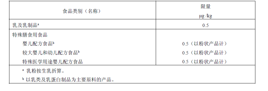 表1食品中黃曲霉毒素M1限量指標(biāo)