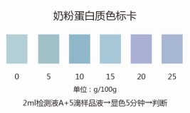 1.3:取2ml蛋白質檢測試劑于比色管中,加入5滴樣品液,振搖混勻5分鐘后,觀察顏色變化并與標準比色卡對比。