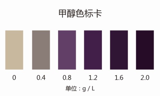 2.1:20分鐘后觀察孔中顏色的深淺,顏色越深,表示酒樣中甲醇的含量越高;(對照色卡上的標(biāo)示值可知酒樣中甲醇的大致含量)