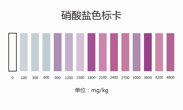 2.1:2分鐘后觀察檢測(cè)管中顏色的深淺,紫紅色顏色越深,表示樣品中硝酸鹽的含量越高;