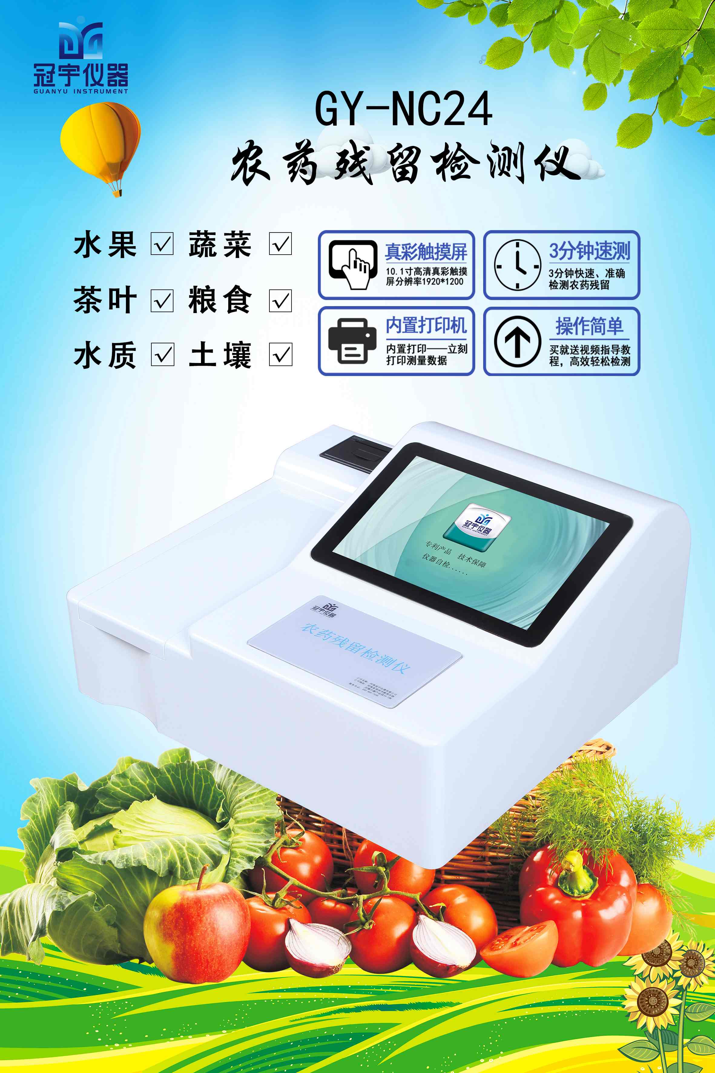 冠宇農(nóng)藥殘留檢測(cè)儀憑借快速的檢測(cè)效率,精準(zhǔn)的檢測(cè)結(jié)果,劃算的檢測(cè)成本受到了眾多農(nóng)殘檢測(cè)市場(chǎng)的認(rèn)可,現(xiàn)已廣泛的使用于果蔬、茶葉生產(chǎn)基地,農(nóng)副批發(fā)零售市場(chǎng)、農(nóng)副食品加工企業(yè)、市場(chǎng)監(jiān)督管理單位的現(xiàn)場(chǎng)檢測(cè),以及學(xué)校食堂、酒店餐館、家庭果蔬食用前的安全監(jiān)測(cè)。