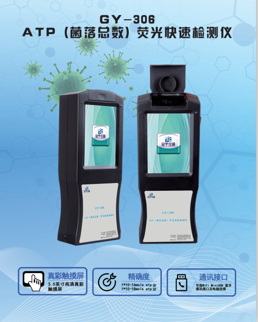 GY-308菌落總數(shù)ATP熒光檢測(cè)儀是河南冠宇儀器有限公司基于螢火蟲發(fā)光原理,利用“熒光素酶—熒光素體系”研制而成;由于所有生物活細(xì)胞中含有恒量的ATP,所以ATP含量可以清晰地表明樣品中微生物與其他生物殘余的多少,菌落總數(shù)ATP熒光檢測(cè)儀GY-308菌落總數(shù)ATP熒光檢測(cè)儀適用于食品、飲用水中微生物快速檢測(cè),餐具潔凈度快速檢測(cè),食品加工器具、工作臺(tái)面、餐飲器具等消毒結(jié)果快速檢測(cè),醫(yī)療環(huán)境工作平臺(tái)即時(shí)評(píng)估。該設(shè)備采用生物化學(xué)反應(yīng)方法檢測(cè)ATP菌落總數(shù)含量。