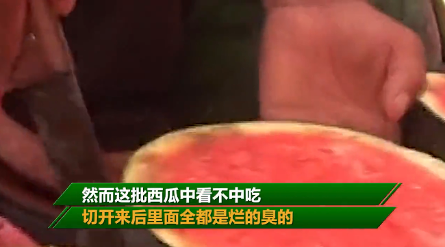 西瓜中看不中吃,挨個切開西瓜看個究竟,發(fā)現(xiàn)西瓜里邊已經(jīng)承纖絮狀,并且伴隨的還有腐臭的味道。