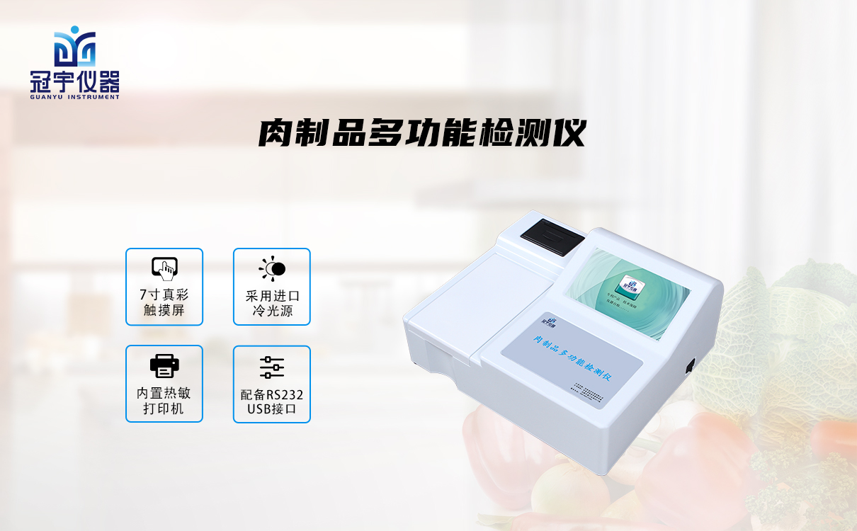 冠宇儀器肉制品多功能檢測儀GY-DS1007能夠快過氧化值,硼砂,揮發(fā)性鹽基總氮,山梨酸,磷酸鹽,焦磷酸鹽,焦磷酸二氫鈉,六偏磷酸鹽,三聚磷酸鹽,肉制品酸價,脂肪,苯并芘,細菌毒素,組胺等多個肉類安全指標的含量??焖俸唵螠蚀_的鑒定肉制成品及半成品的食品安全問題,為我們舌尖上的安全出一份力。