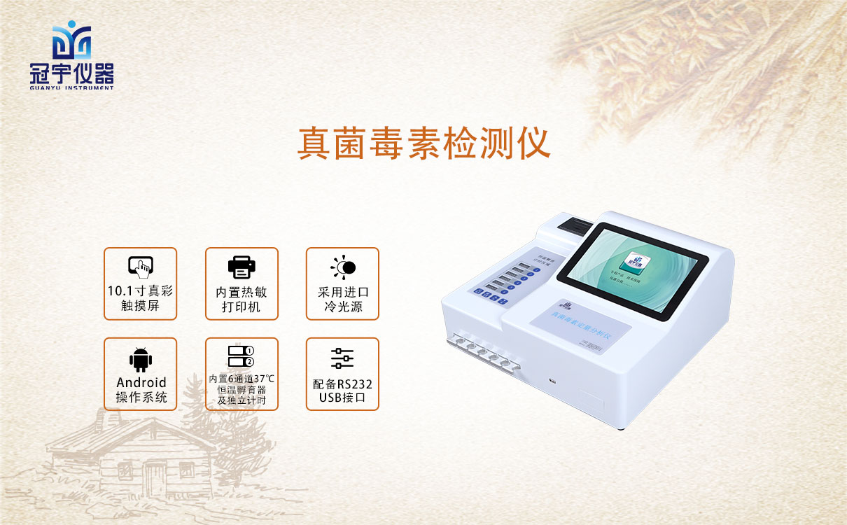 冠宇儀器生產(chǎn)的真菌毒素檢測儀以熒光卡定量檢測夠快速定量檢測糧食、飼料、谷物、食用油、調(diào)味品等食品中黃曲霉毒素、T2毒素、嘔吐毒素、赭曲霉毒素、伏馬毒素、玉米赤霉烯酮,真菌毒素殘留定量分析儀適用于糧油監(jiān)測中心、糧油飼料生產(chǎn)加工、食品加工貿(mào)易、畜禽養(yǎng)殖戶自查、工商質(zhì)監(jiān)部門用于市場快速篩查等。