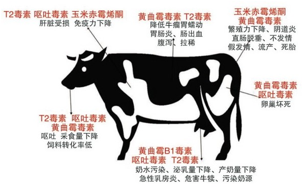 近年來(lái)霉菌毒素污染飼料及原料引起的畜牧養(yǎng)殖業(yè)的一連串連鎖反應(yīng),對(duì)養(yǎng)殖場(chǎng)造成很多的沖擊,嚴(yán)重影響?zhàn)B殖人的利益,霉菌毒素污染不容忽視,下邊說(shuō)一下霉菌毒素對(duì)牛的影響,供養(yǎng)牛人參考和防范: