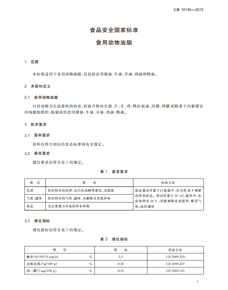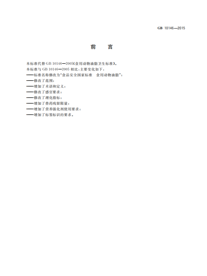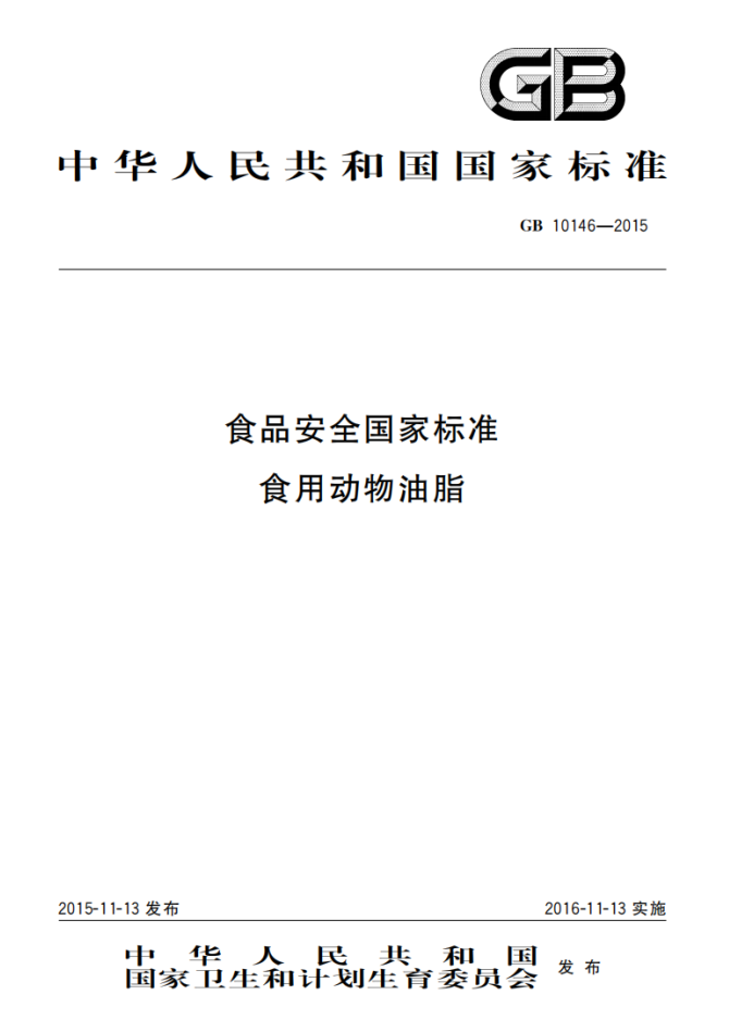 本站食品標準僅供食品技術(shù)同行的交流學(xué)習,不承擔任何技術(shù)GB 10146-2015 食品安全國家標準 食用動物油脂 ,請通過專門途徑購買國家發(fā)布的食品標準