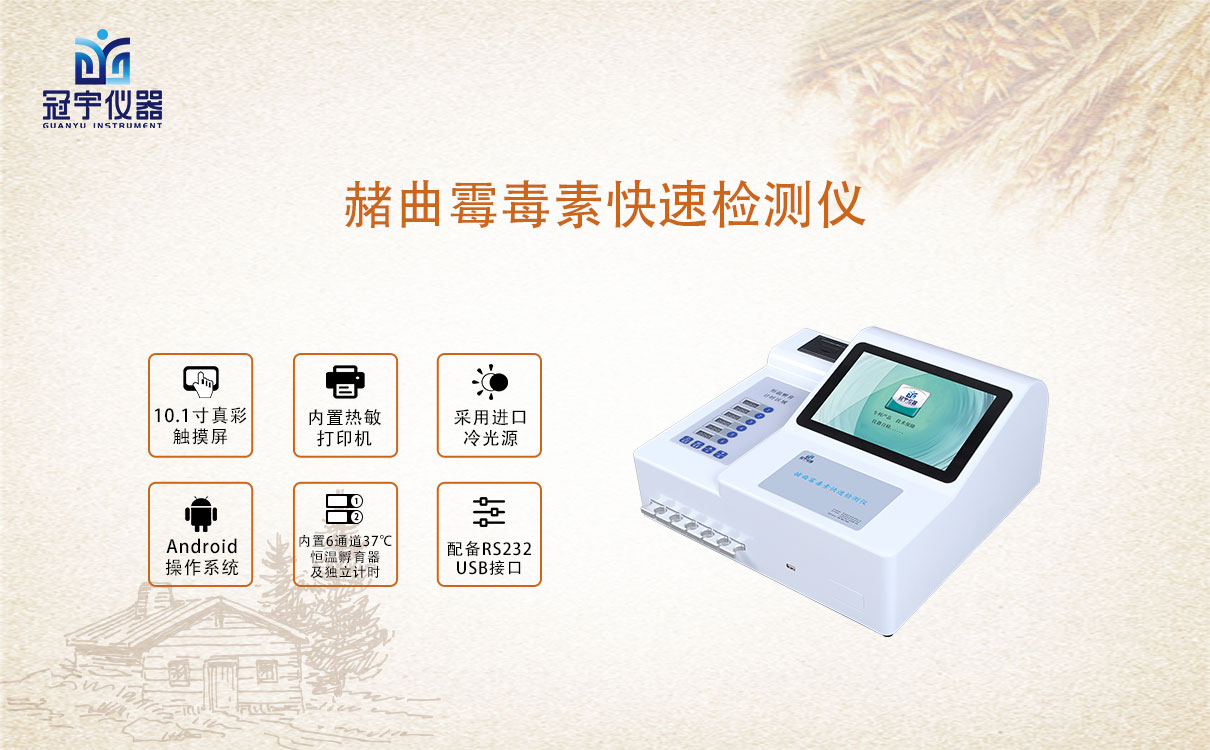 冠宇儀器真菌毒素檢測(cè)儀能夠快速定量檢測(cè)糧食、飼料、谷物、食用油、調(diào)味品等食品中T2毒素、嘔吐毒素、赭曲霉毒素、伏馬毒素、玉米赤霉烯酮,適用于糧油監(jiān)測(cè)中心、糧油飼料生產(chǎn)加工、食品加工貿(mào)易、畜禽養(yǎng)殖戶自查、工商質(zhì)監(jiān)部門用于市場(chǎng)快速篩查等。杜絕赭曲霉毒素超標(biāo)的糧食原料及食品流入市場(chǎng)。造成危害。