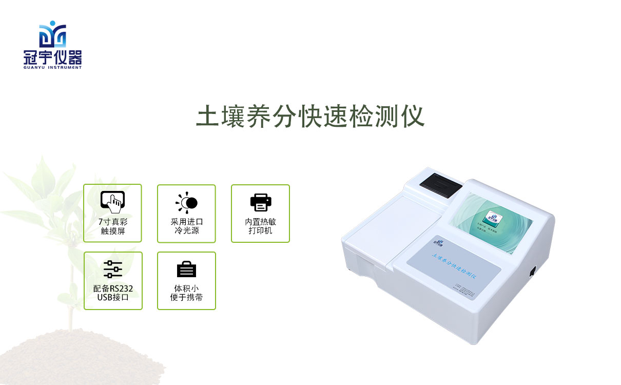 冠宇儀器土壤養(yǎng)分檢測儀能夠快速檢測土壤有機質(zhì),土壤中全氮,化肥中全氮,土壤中全磷,化肥中全磷,植物中全磷,土壤中全鉀,化肥中全鉀,土壤中速效氮,化肥中速效氮,土壤中速效磷,化肥中速效磷,植物中全磷,土壤中速效鉀,化肥中速效鉀,氯離子,硝態(tài)氮等。