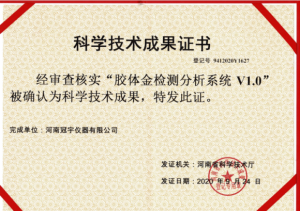 河南冠宇儀器有限公司(以下簡稱:冠宇儀器)繼多項軟件著作權證書、實用新型專利證書、計算機軟件著作權等一系列證書之后,又獲由河南省科學技術廳頒發(fā)的一項“膠體金檢測分析系統(tǒng)V1.0科學技術成果證書”,一系列的權威肯定,彰顯了冠宇儀器強大的技術研發(fā)能力,也體現(xiàn)出公司為客戶提供優(yōu)質(zhì)產(chǎn)品的強大決心。