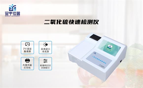 鑒于二氧化硫?qū)θ梭w的嚴(yán)重危害性,為避免食品中二氧化硫殘留量超標(biāo)而引起食用者中毒等不良反應(yīng),各國都制定了一系列標(biāo)準(zhǔn)來嚴(yán)格控制二氧化硫使用量和殘留量。及時對食物中的二氧化硫含量進(jìn)行檢控。冠宇儀器二氧化硫快速檢測儀能夠快速檢測竹筍、蜜餞涼果、餅干、粉絲、白糖、淀粉、陳糧、米粉、烤魚片、魷魚絲、蟹肉、魚糜、魚干、黃花菜、果脯、巧克力、葡萄酒、啤酒及麥芽飲料等中的二氧化硫含量。