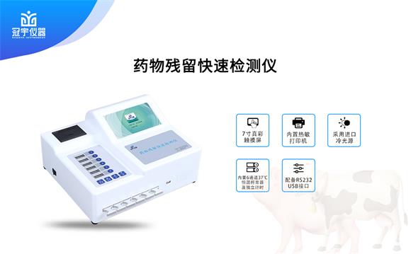 冠宇儀器三聚氰胺檢測儀可定量快速檢測動物疫病、藥物殘留、抗生素殘留、瘦肉精、三聚氰胺等有毒有害物質(zhì)或非法添加物質(zhì)殘留含量。