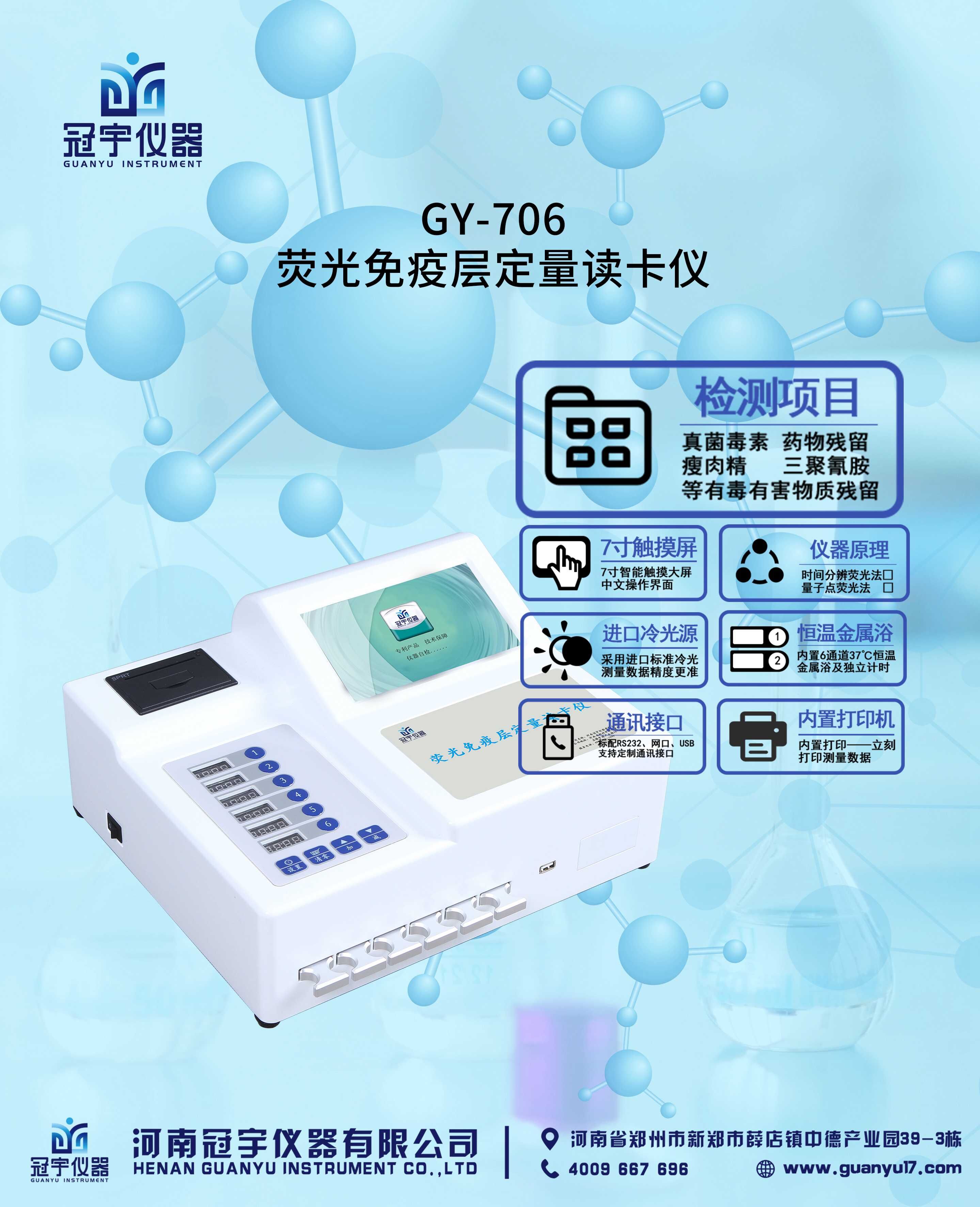 量子點(diǎn)熒光定量分析儀GY-706量子點(diǎn)熒光定量分儀應(yīng)用競(jìng)爭(zhēng)抑制免疫層析的原理,通過(guò)檢測(cè)線(xiàn)熒光定量卡中的熒光強(qiáng)弱程度,定量分析量子點(diǎn)熒光法制成的真菌毒素、獸藥、瘦肉精、抗生素、動(dòng)物疫病、農(nóng)藥殘留、臨床檢查項(xiàng)目、等有毒有害物質(zhì)殘留