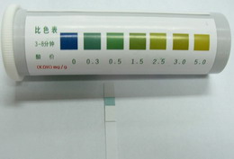 試紙顏色與色卡相同或相近以色卡標(biāo)示值報(bào)告結(jié)果。如試紙顏色在兩色卡之間,則取兩者的中間值。國(guó)家食品衛(wèi)生標(biāo)準(zhǔn)BG2716-2005對(duì)食用植物油酸價(jià)和過(guò)氧化值有一個(gè)統(tǒng)一的最高限量標(biāo)準(zhǔn),即植物原油酸價(jià)≤4mg KOH/g,食用植物油酸價(jià)≤3mg KOH/g;植物原油和食用植物油的過(guò)氧化值都要≤0.25g/100g(相當(dāng)于19.7meq/Kg)。在國(guó)家其他標(biāo)準(zhǔn)中實(shí)行質(zhì)量分級(jí)管理,詳見(jiàn)下面參考資料。