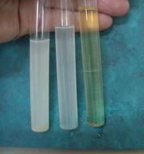 2.3:混有礦物油時久放析出透明油滴浮于液面。