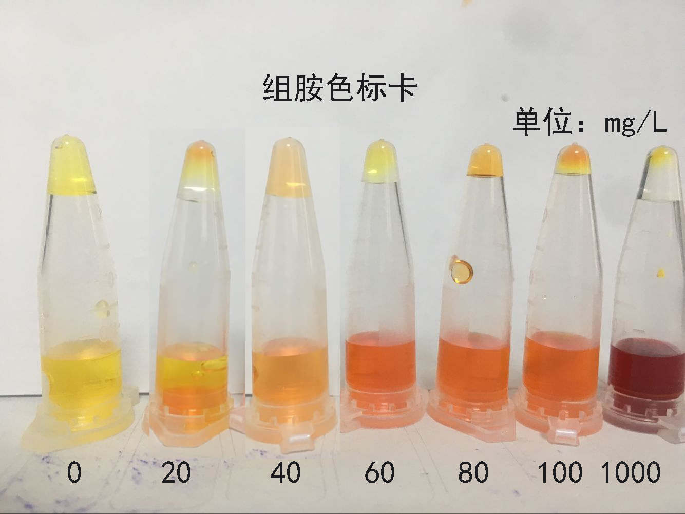 2.2:當(dāng)顏色變?yōu)樯罴t色或紫色時(shí),表明組胺含量較高。(見(jiàn)色卡)