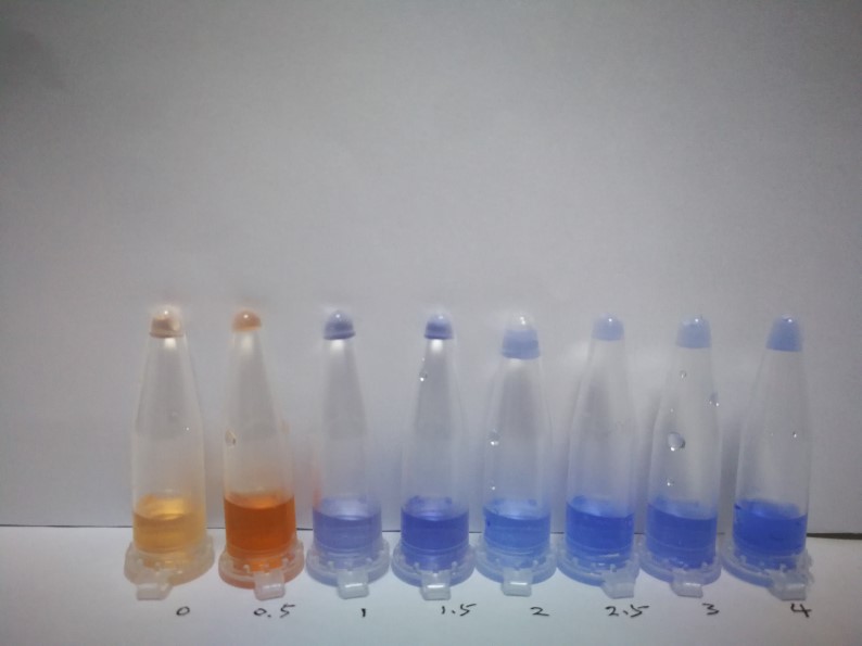1.2:各吸取0.5mL樣品液和純水于離心管中,依次加2滴檢測(cè)試劑A和2滴檢測(cè)試劑B。